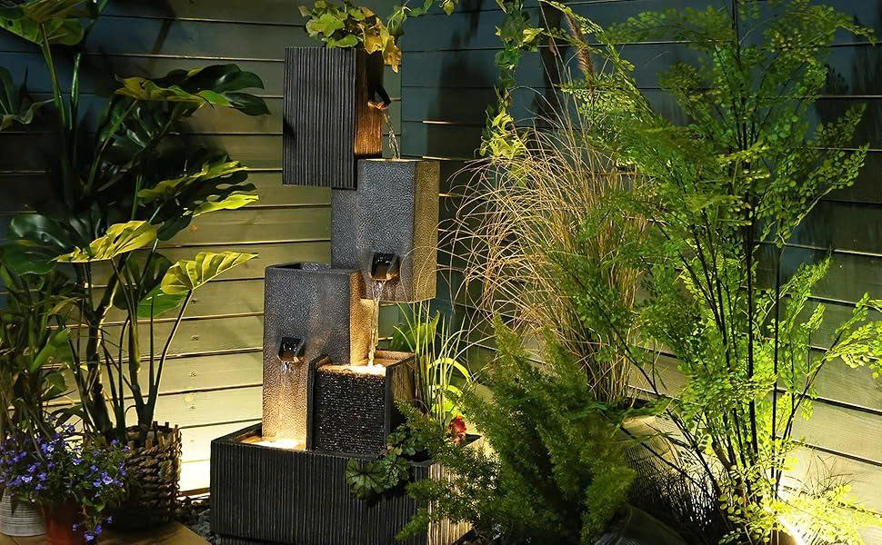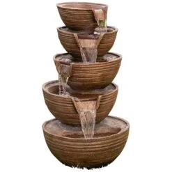βBring tranquility and elegance to your home or garden with the Alpine Bowls 5-tier waterfall fountain. Let the soothing sound of cascading water and the vibrant glow of LED lights create a peaceful oasis where relaxation meets beauty.β