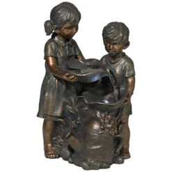 Enhance your outdoor space with the Mendit 2-jar fountain, featuring a sleek gray stone finish and vibrant LED lighting. Standing 29 inches tall, it offers soothing water flow to create a relaxing ambiance.