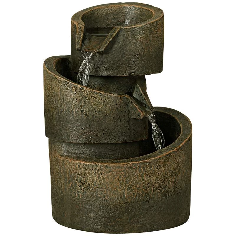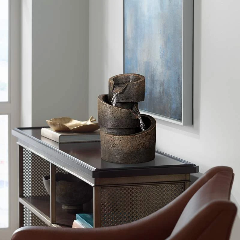 3-Tier Bronze Stone Contemporary 9 3/4″ High Tabletop Fountain