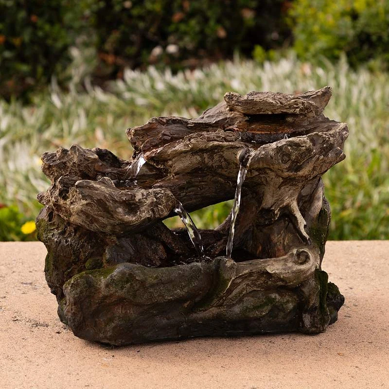Alpine Mossy Rainforest 10″H 3-Tier LED Outdoor Tabletop Fountain