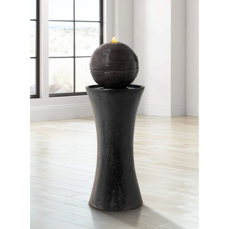 Dark Sphere 35 1/2″ High LED Pillar Bubbler Fountain
