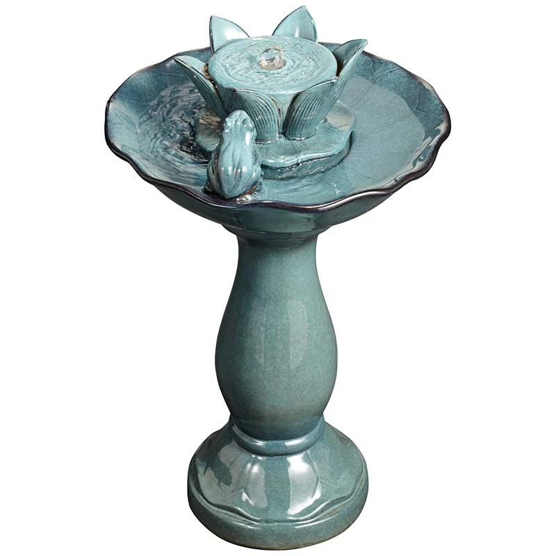 Pleasant Pond 25 1/4″ Outdoor Pedestal Frog Fountain