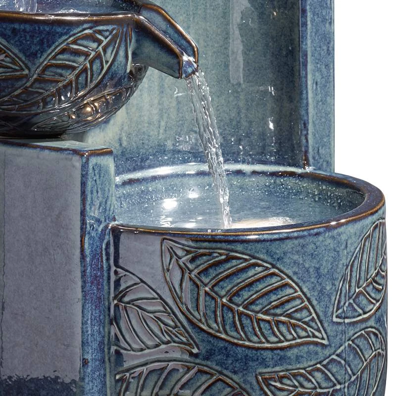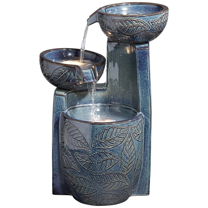 Summer Leaves 26″ High Ceramic Fountain With LED Lights