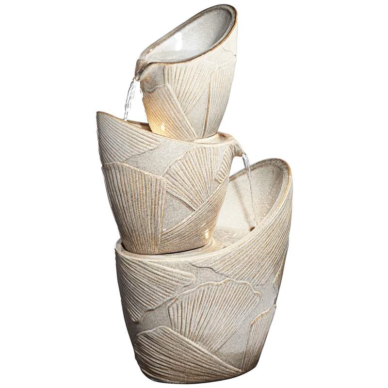 Three Urn With Leaves 30″ High LED Cascading Floor Fountain