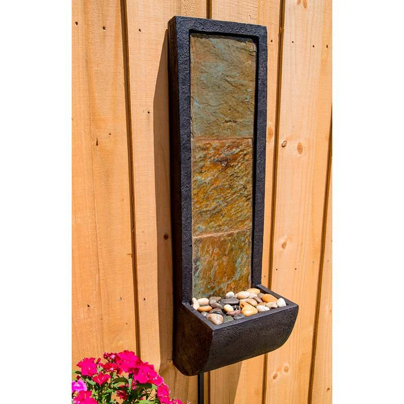 Triptych 37″ Natural Slate Modern Wall Fountain With Light