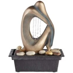 Serene 38″ High Ivory Ceramic 2-Tier LED Garden Patio Water Fountain